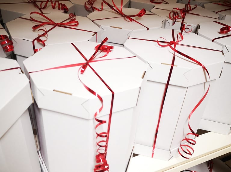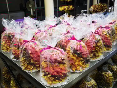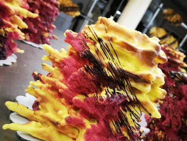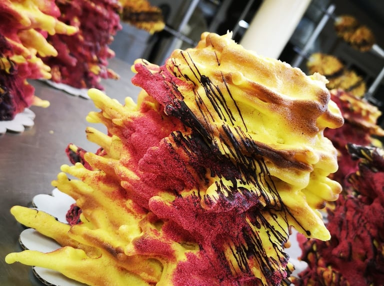 Kepame 0.3 kg - 6 kg svorio 2-iejų rūšių šakočius – su margarinu, arba su sviestu. Šakočiai yra kepami ant 5 skirtingų dydžių volų ir gali siekti 55 cm aukštį. Glaistome šokoladu, puošiame liofilizuotų aviečių milteliais, galime puošti cukraus masės gėlėmis ir kitomis dekoracijomis.