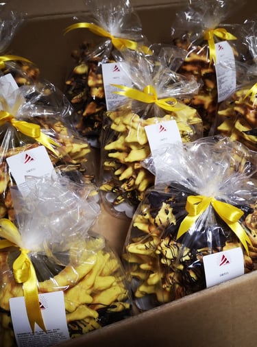 Gaminame šakočius pagal individualius užsakymus. Galime pagaminti įvairiausių dydžių ir papuošimų gardėsį jūsų šventei (nuo 0,3 kg. iki 6 kg.)!